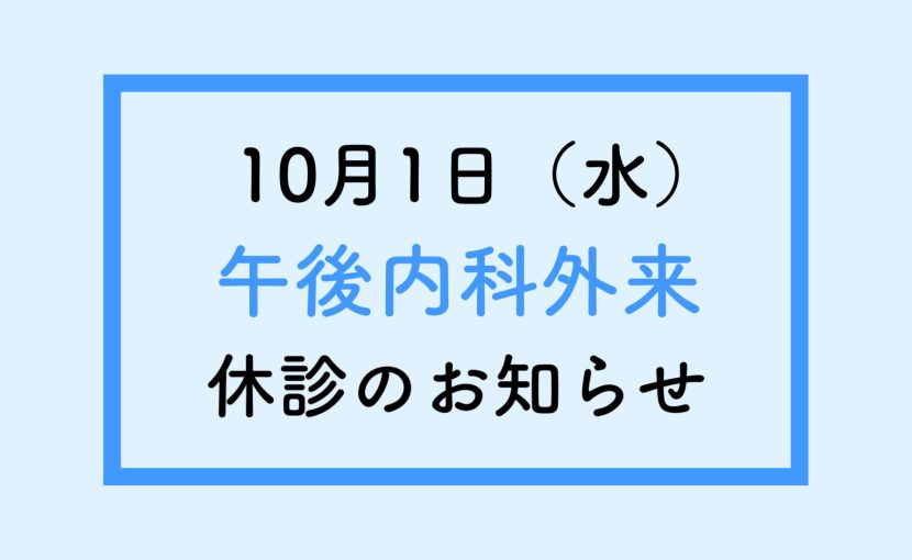 午後内科外来休診のお知らせ2025.09.30 Tweet午後内科外来休診のお知らせ10月1日(水) 午後診 内科外来 鄧Dr 上記、休診とさせて頂きます。何卒、ご了承のほどお願い申し上げます。 相原第二病院 Tweet午前整形外来時間変更のお知らせ前の記事午前内科外来時間変更のお知らせ次の記事